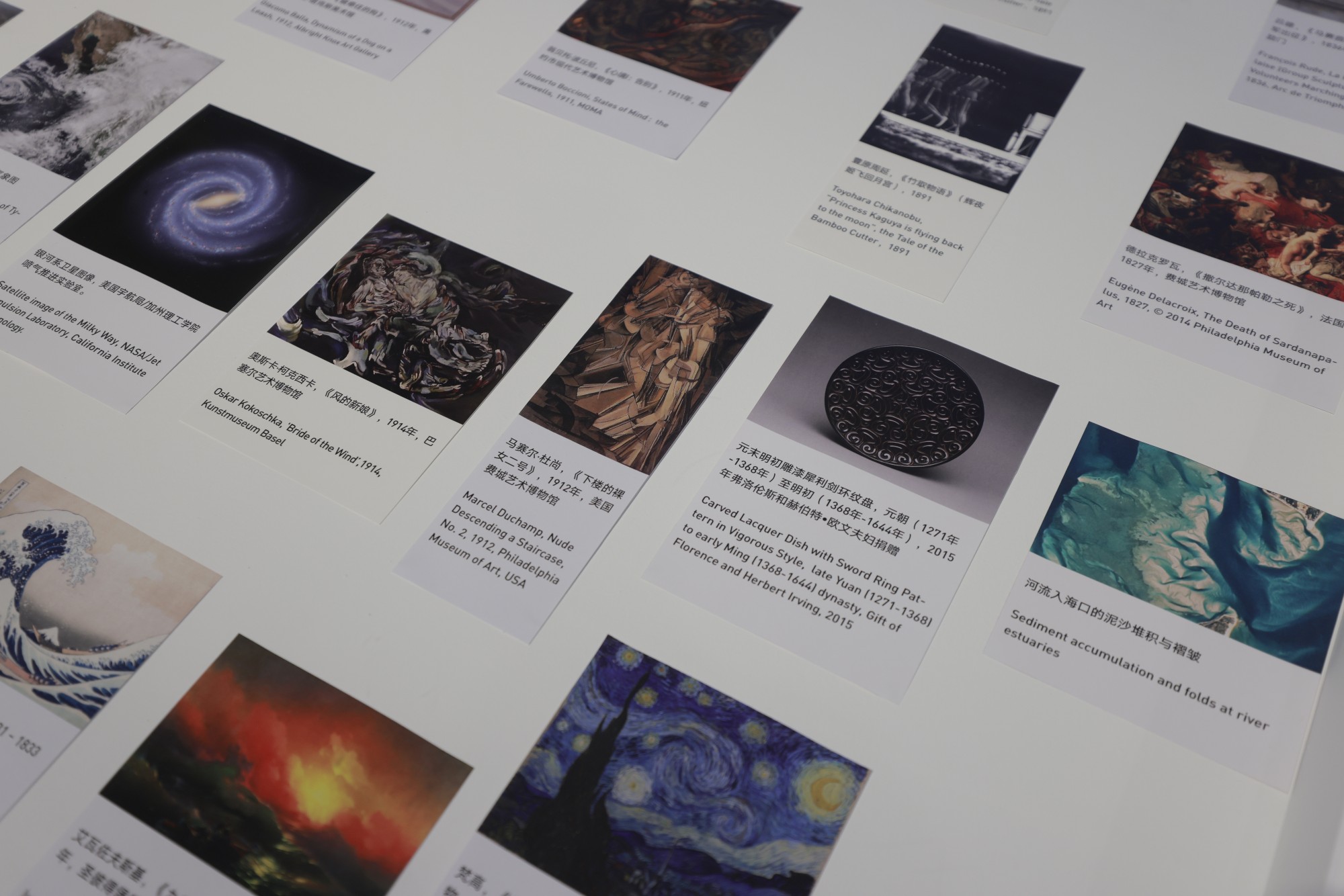 The curatorial framework critically engages with Walter Benjamin’s concept of “constellation” and Aby Warburg’s “decentralized” iconology. Within the exhibition, the Atlas of Re-Constellations serves as a parallel visual-theoretical field. Adopting Warburg’s method of juxtaposition, it links artists’ works with images from across the globe. Yet, unlike Warburg’s Eurocentric plates, this atlas refuses to treat non-Western cultures as “specimens of the Other.” Instead, it employs the diverse cosmologies of the Global South as an independent coordinate system, allowing stellar symbols from various civilizations to resonate in a “decentralized” network of meaning.